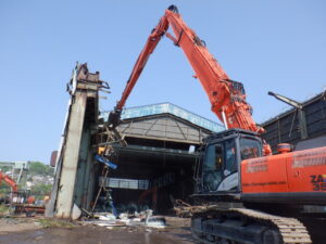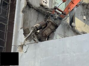 その後、専用の大型重機を使ってコンクリートを砕きながら解体を進めます。