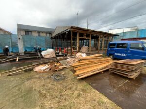 比較的軽量な建物ですが、騒音や振動、ホコリの発生を抑えるため、近隣の皆さまへの配慮を大切にしながら、慎重に作業を行います。