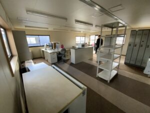 また、工場のすぐ隣には、整備部専用の事務所となるプレハブができあがっています。