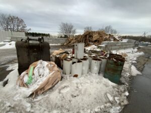 リサイクルセンターでは、廃棄物の保管場所が区分ごとに明示され、分別管理が徹底されていました。