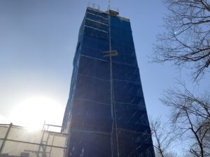 2か所目の室蘭市の現場では工事が順調に進んでおり、上部から解体を進めている煙突も徐々に低くなってきています。