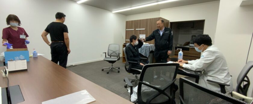 現場から戻った社員が帰宅前の時間にスムーズに接種できる体制を整えました。